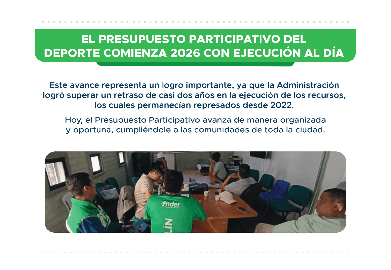 De esta manera, el Presupuesto Participativo continúa fortaleciendo el acceso al deporte, la recreación y la actividad física en los territorios, promoviendo la participación ciudadana y el mejoramiento de la infraestructura deportiva del Distrito.